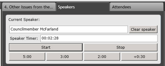 Designate an amount of time for the speaker. You can add additional time to the speaker timer by clicking +0:30.
