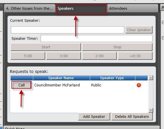Note: The Quick Note field can be customized to auto-generate text when a speaker is called.