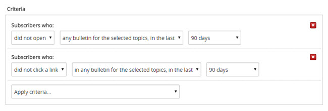 Tip: A good place to start is targeting subscribers who haven't opened any bulletins for a specified time period.