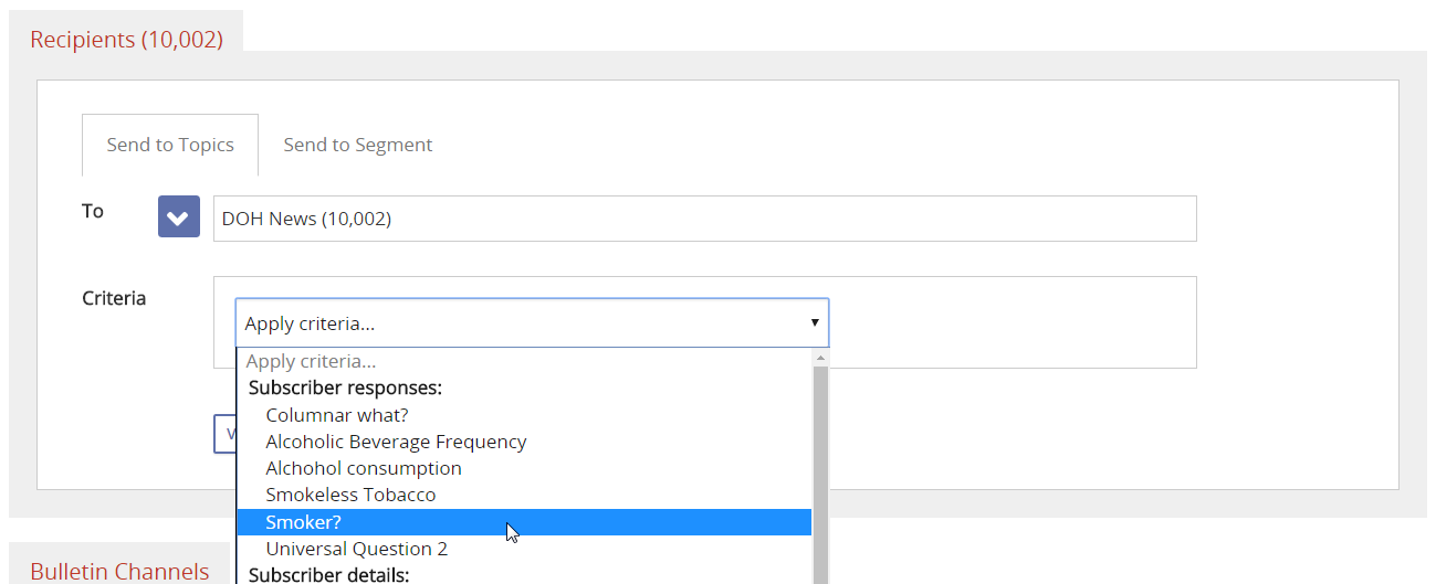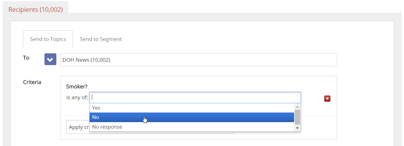 Restrict your recipients to subscribers with a particular answer