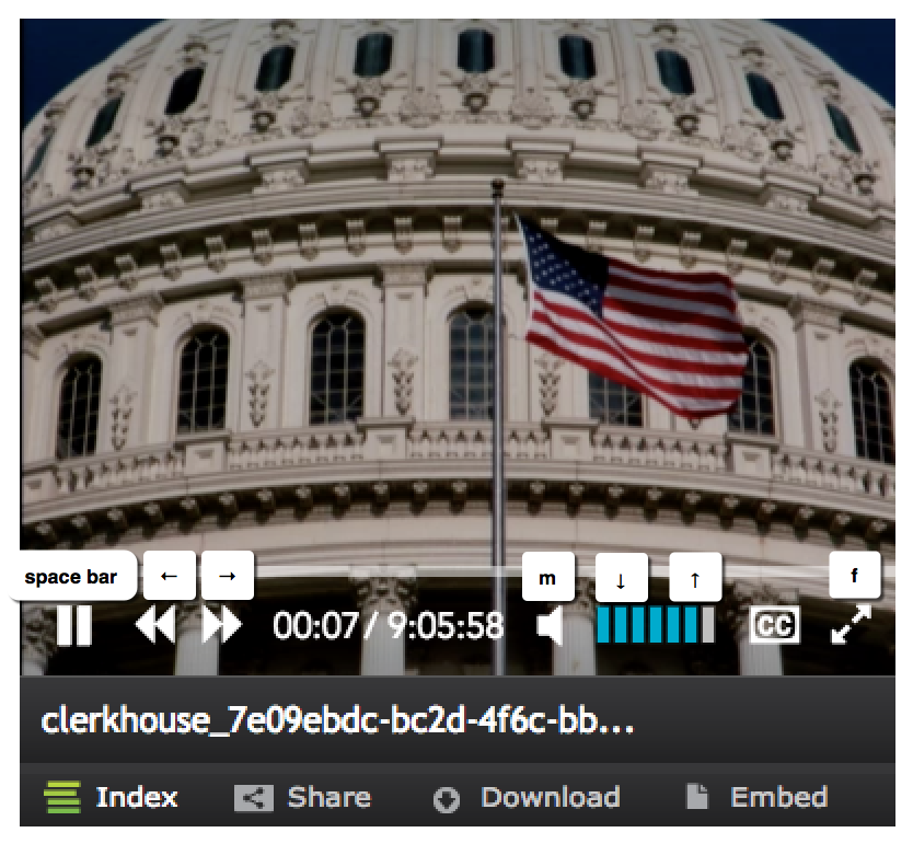 In addition to using the on-screen player interface, you can control the video playback in a number of ways using your keyboard. The image below displays some of the keystrokes you can use as an alternate to the on-screen player icons.