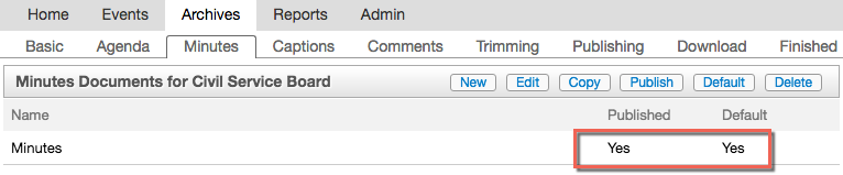 You can add multiple minutes documents and they will appear in a drop-down menu on the view page. Complete the following steps from the Archives tab: