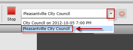 To switch between loaded meetings in LiveManager, just select the meeting from the menu available.