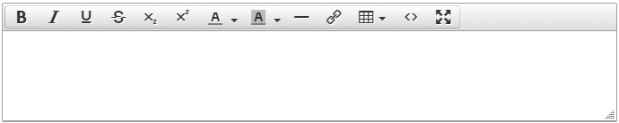 This toolbar enables you to format your text. You can bold, italicize, and strike through the text, and you can create subscripts and superscripts. You can change the text color and background color, insert horizontal lines, insert hyperlinks, and create tables.