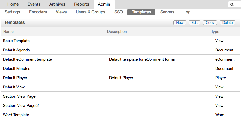 1. Navigate to the Admin tab, then select the Templates sub-tab.