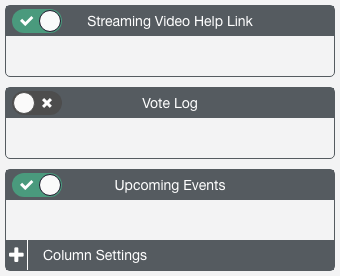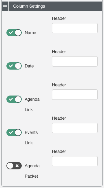 4. The Upcoming Events toggle lets you include upcoming events on your page or hide them. Click Column Settings to control which columns will display.