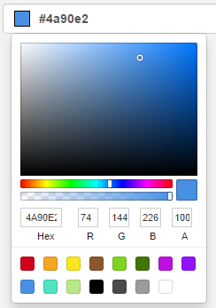 1. Use the color pickers in any of the color fields to select a new color for each element you'd like to change. You can use the color bar, or enter a custom color using hex codes or RGB values. To exit the color picker, click out of the box. The preview pane on the right will display your choices.